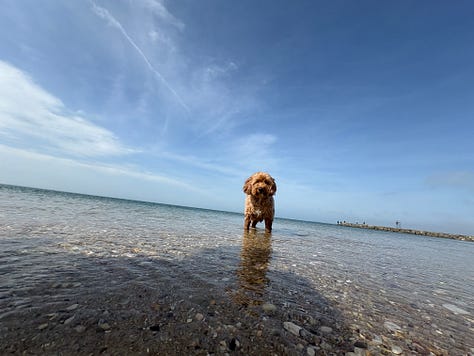 For me, joy typically appears in rituals and simple pleasures: walking Stewart along the trail, feeling the sand and the wind as the day slows; connecting with someone over coffee; spending hours out in nature; sitting down to a good meal with a glass of wine, savoring conversation as much as the food; and exercise, where body and mind fall into step.