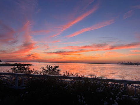 Dinner with my still living-at-home adult children, listening to them chatter about their day. Looking at the ocean and being reminded that I am but a small speck of nothingness.